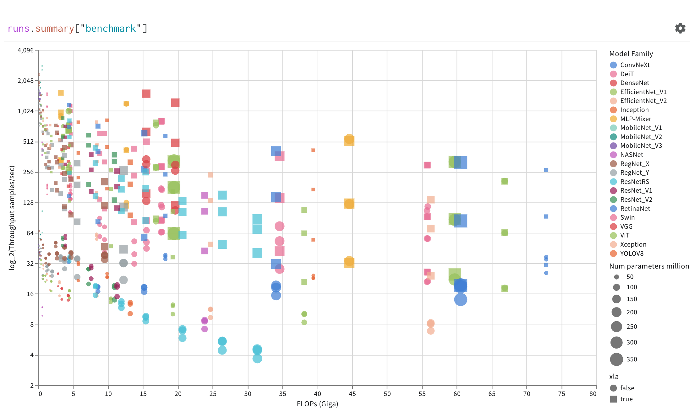 Use query panels to access the runs object. Run objects store records of your experiments. You can find more details about it in this section of the report but, as quick overview, runs object has available: