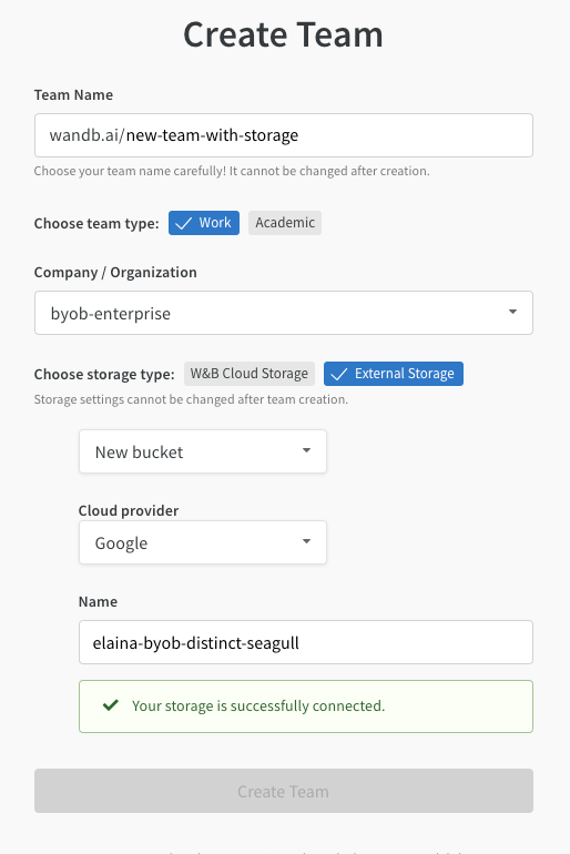 チームレベルのセキュアストレージコネクタを使用すると、Teams は独自のクラウドストレージバケットを W&B とともに使用できます。これにより、高度に機密性の高いデータや厳格なコンプライアンス要件を持つチームのために、データのアクセス制御とデータ隔離を強化することができます。