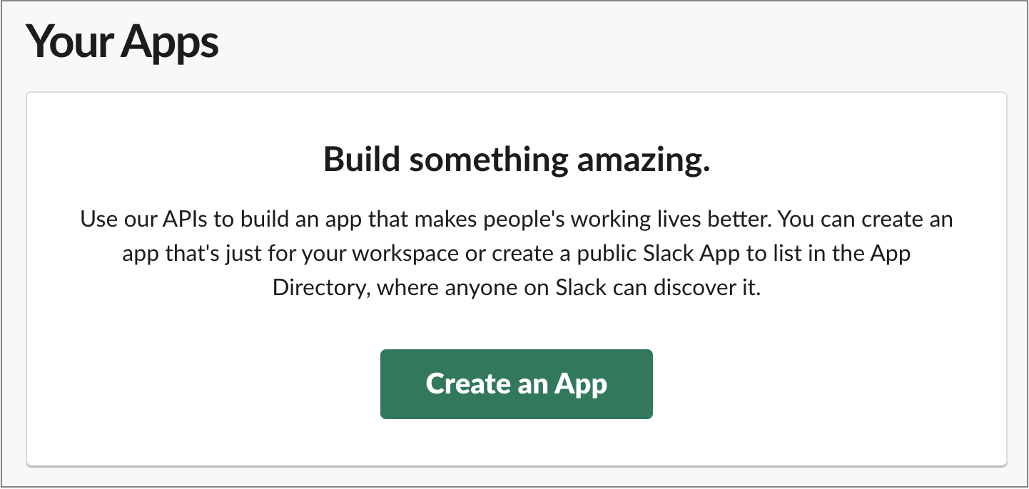 - https://api.slack.com/apps を訪問し、Create an App を選択します。