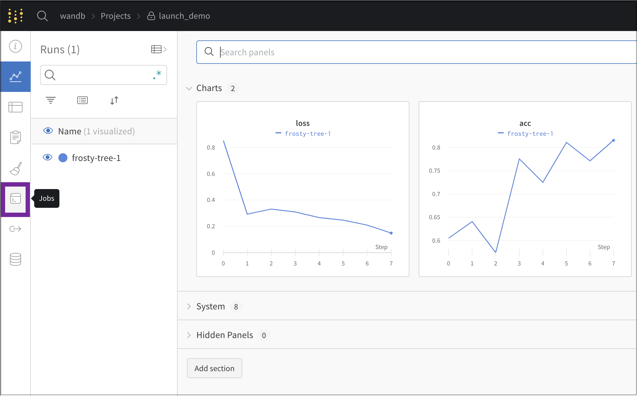 2. 左パネルのJobsアイコンを選択します: