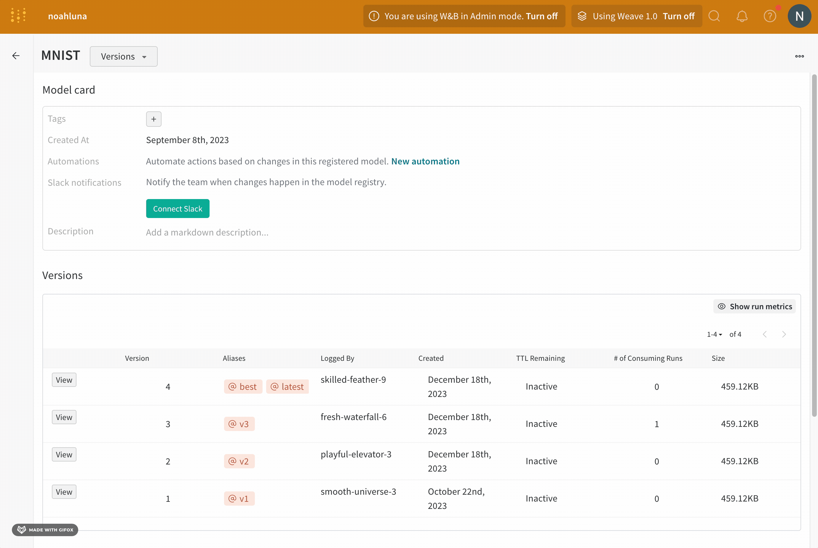 このウォークスルーでは、W&Bにモデルをログする方法を紹介します。このセッションが終わる頃には以下のことができるようになります: