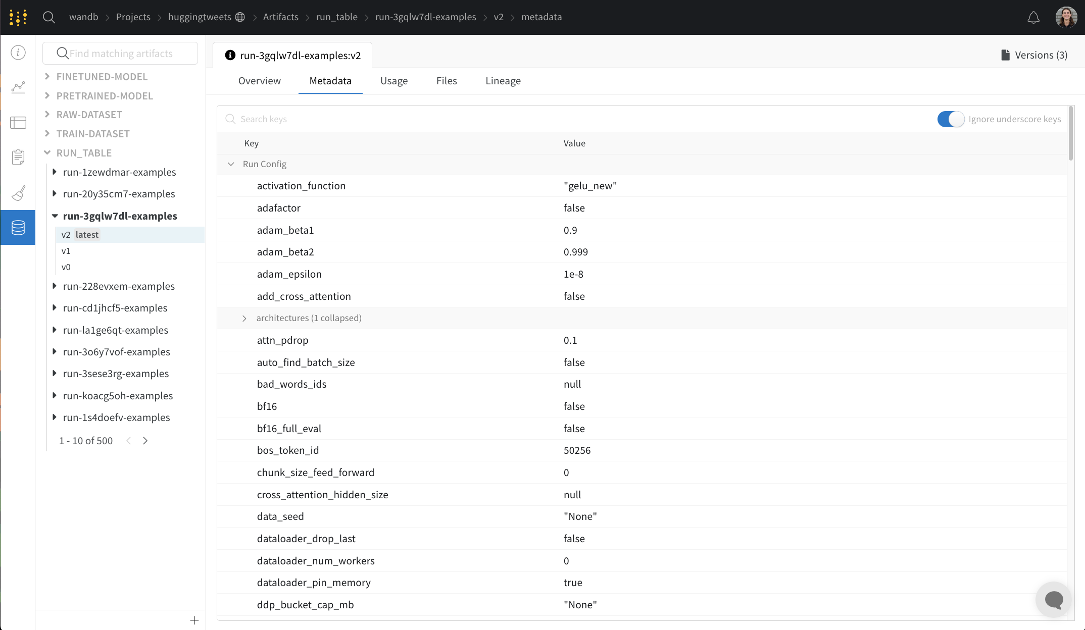 트레이닝 데이터셋과 파인튜닝된 모델부터 메트릭 및 미디어의 테이블에 이르기까지 프로젝트와 관련된 모든 아티팩트을 보세요.