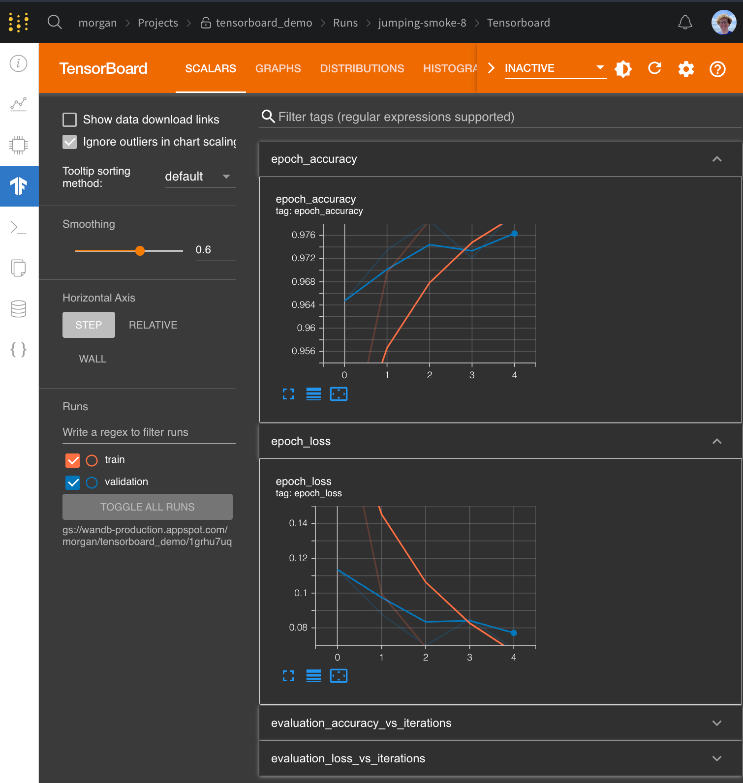 Weights & Biases에서 호스팅되는 Tensorboard의 예시 보기