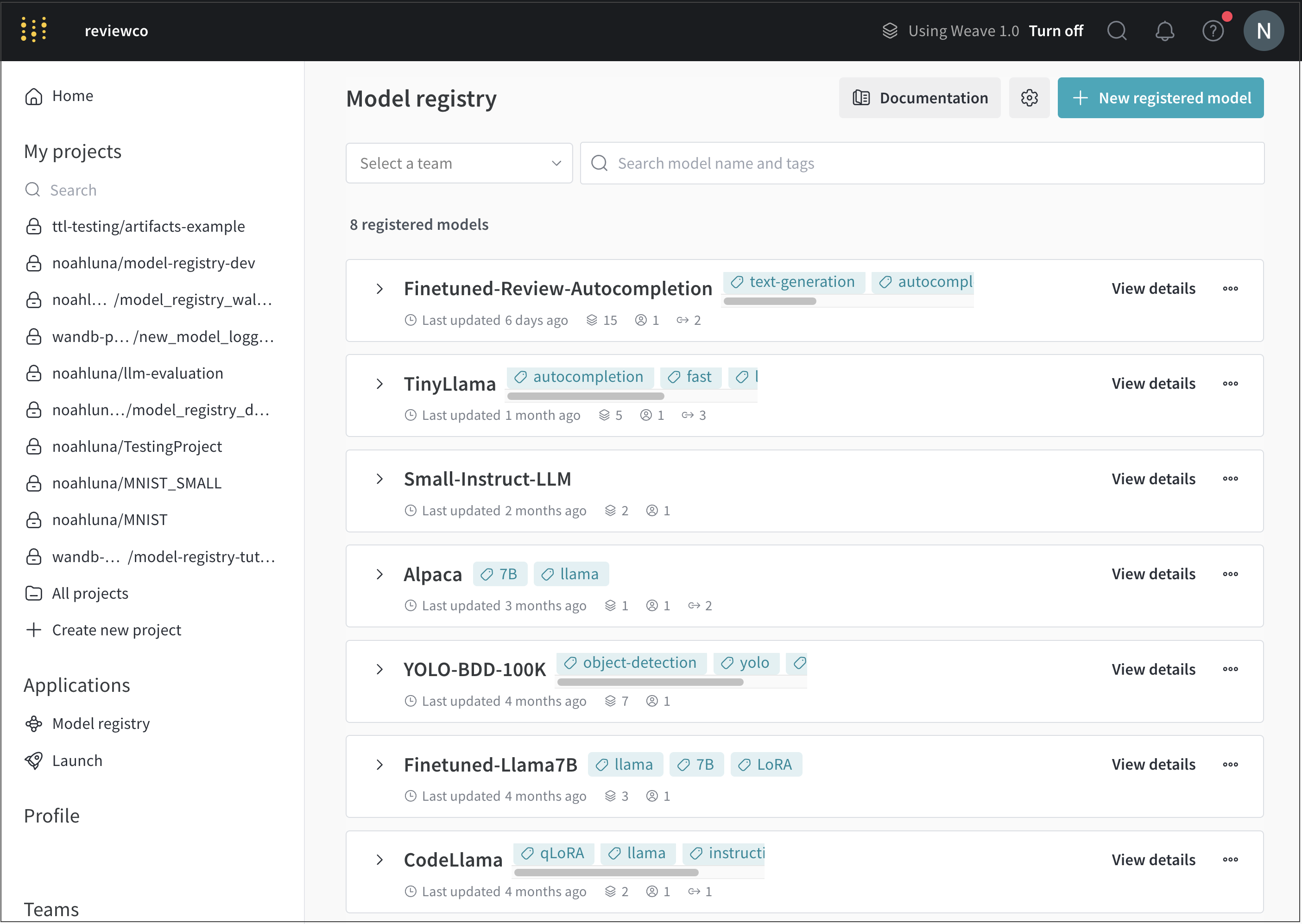 https://wandb.ai/registry/model에서 W&B 모델 레지스트리 앱으로 이동합니다.